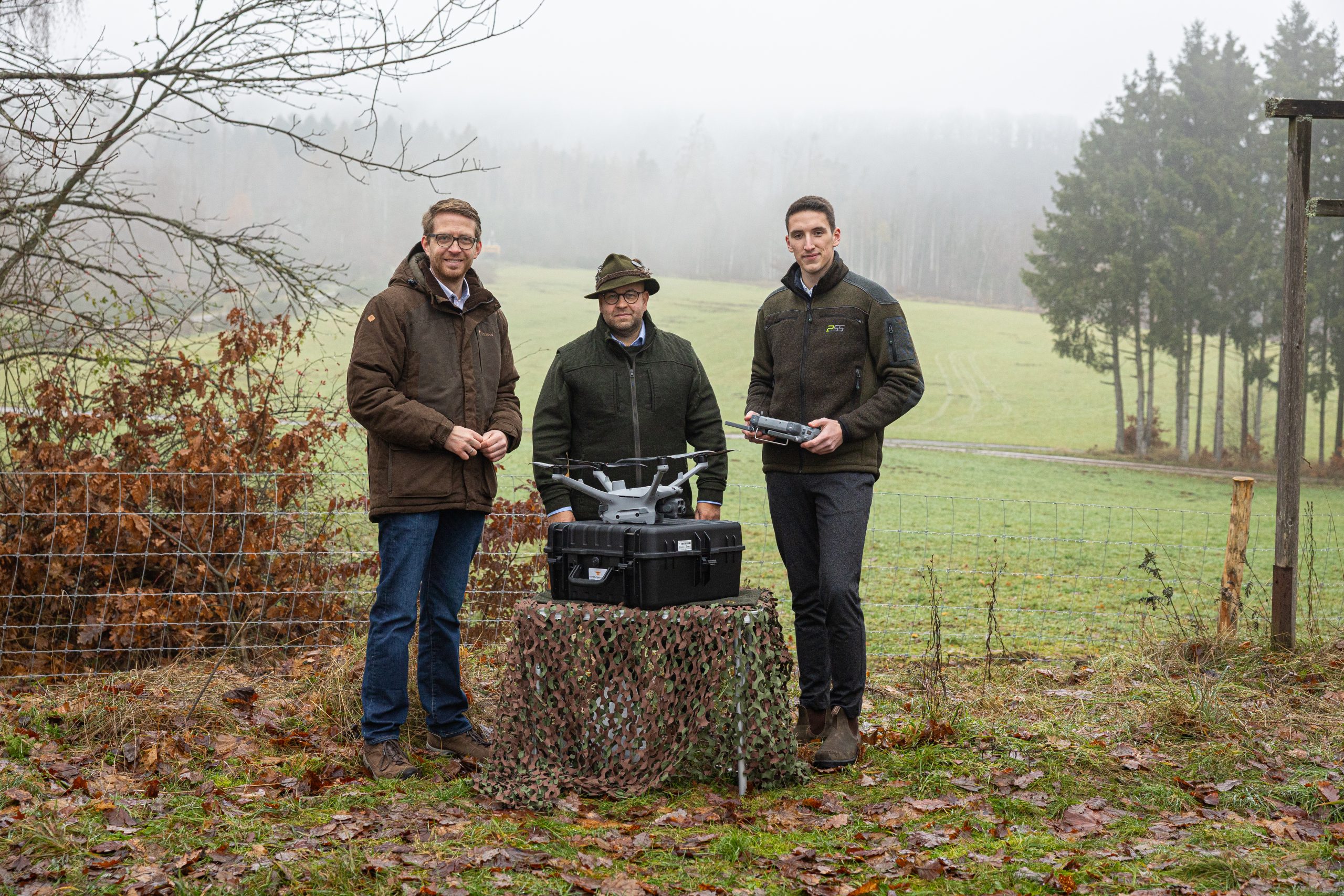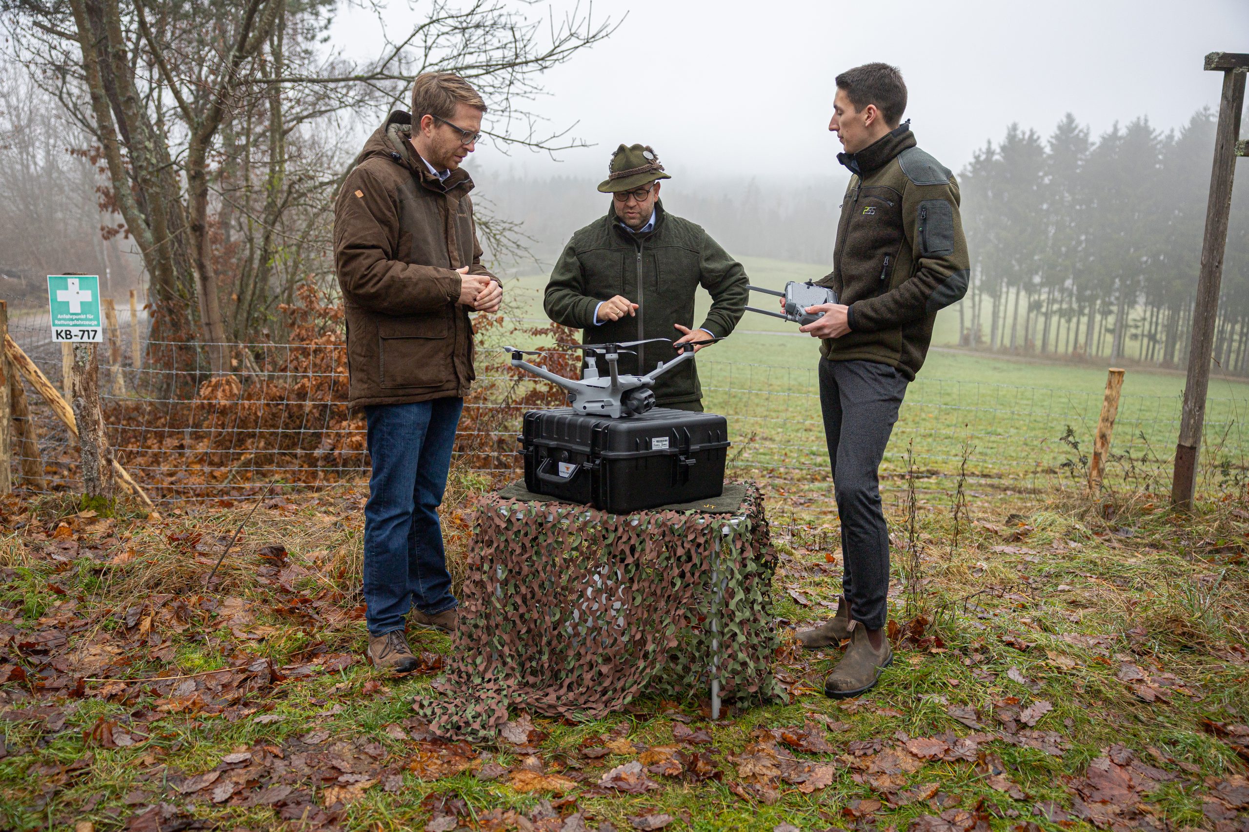 Im Rahmen eines Besuchs in der Region machte sich Michael Ruhl, Staatssekretär im Hessischen Ministerium für Landwirtschaft und Umwelt, Weinbau, Forsten, Jagd und Heimat, ein Bild von der neu angeschafften Drohne der Jägervereinigung Frankenberg e.V., die künftig vor allem zur Kitzrettung eingesetzt wird. Vorgestellt wurde sie von Jens P. Tripp, dem 1. Vorsitzenden der Jägervereinigung und Finn Kraus, Mitinitiator der vereinsinternen Arbeitsgruppe Kitzrettung.
