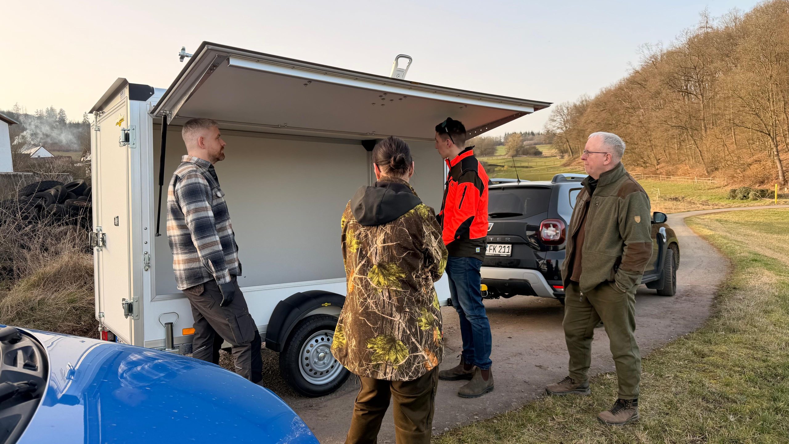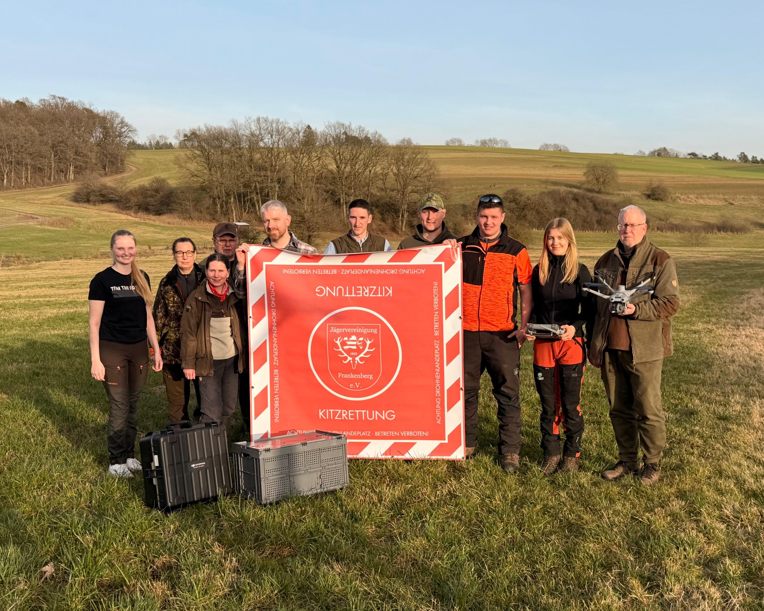 Die Arbeitsgruppe Kitzrettung der Jägervereinigung Frankenberg e.V. hat sich am vergangenen Wochenende in fast vollständiger Besetzung zu gemeinsamen Übungsflügen getroffen. Insgesamt 15 Jägerinnen und Jäger gehören der Gruppe bisher an. Mit den Übungen bereitet sich die Gruppe auf die bevorstehende Kitzrettungssaison vor und gilt inzwischen als einsatzbereit. Die Jägervereinigung Frankenberg e.V. hatte die Arbeitsgruppe am 4. Juni 2025 gegründet und seither ca. 18.000€ investiert. Obfrau der Gruppe und Ansprechpartnerin für Landwirte ist Jana Heinze. Der 1. Vorsitzende Jens P. Tripp kümmerte sich um die Förderanträge, Spendengelder und begleitet die Arbeit der Kitzrettung seit Beginn. Ziel der Initiative ist es, die technische Ausstattung zur Rettung von Rehkitzen und Brutgelegen im südlichen Landkreis Waldeck Frankenberg weiter auszubauen. Durch diese Anschaffungen können weitere Kitze vor dem qualvollen Tod bewahrt werden. Die Mahd zu den gefährdeten Zeitpunkten im Wirkungsgebiet erfolgt häufig flächendeckend innerhalb von etwa zwei Wochen.